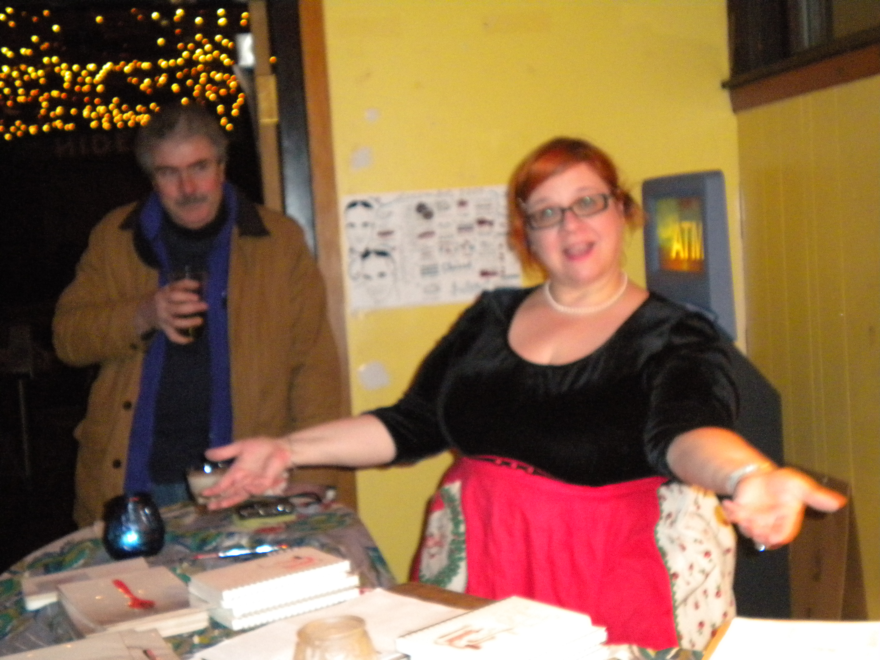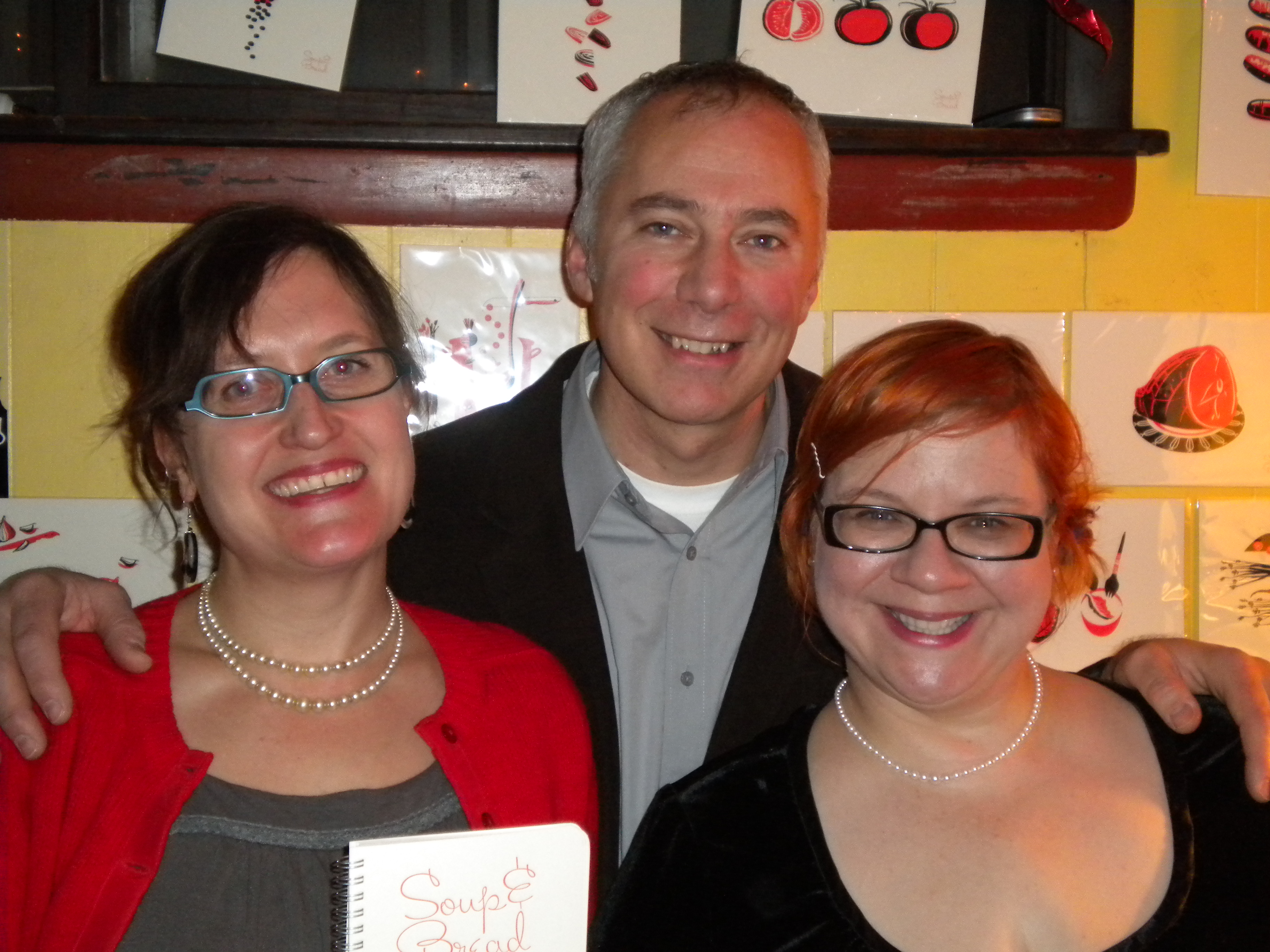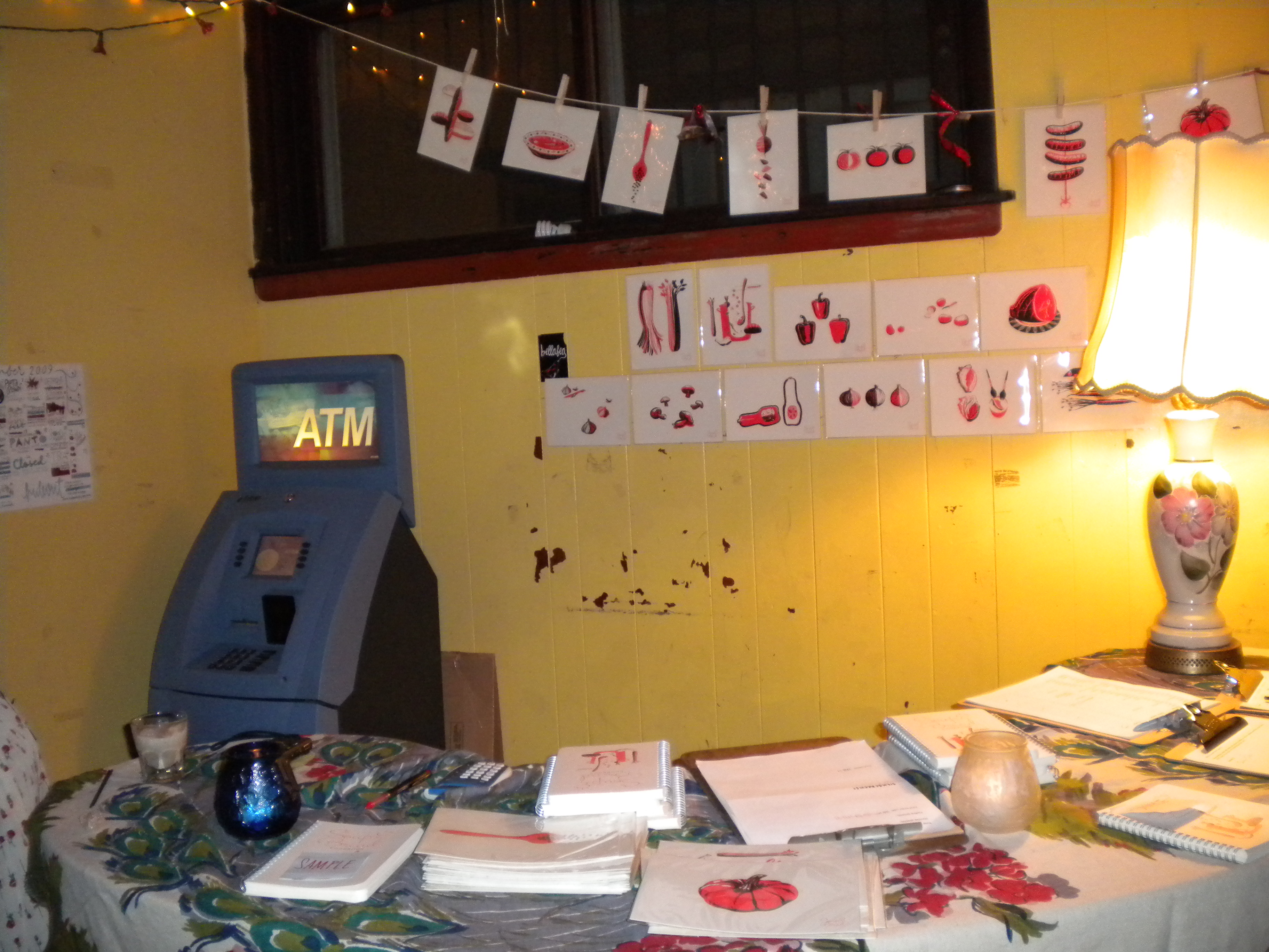 We had a great time last night … at least until the locks on our car froze shut. We hope to see you one of these Tuesdays at the Holiday Sale — where, in addition to cookbooks and prints, you can pick up work by artists Sarah Bortt, Helen Tsatsos, Marvin Tate, Laurie Freivogel, Mark DeBernardi, and others. Soup mavens Sheila, Vera, and Anastasia will be selling knitted goods, bartender Andrea will have handmade clothes on hand, Alana will be selling posters, and … I’m sure there’s something I am forgetting but, in other words, One Stop Shopping.