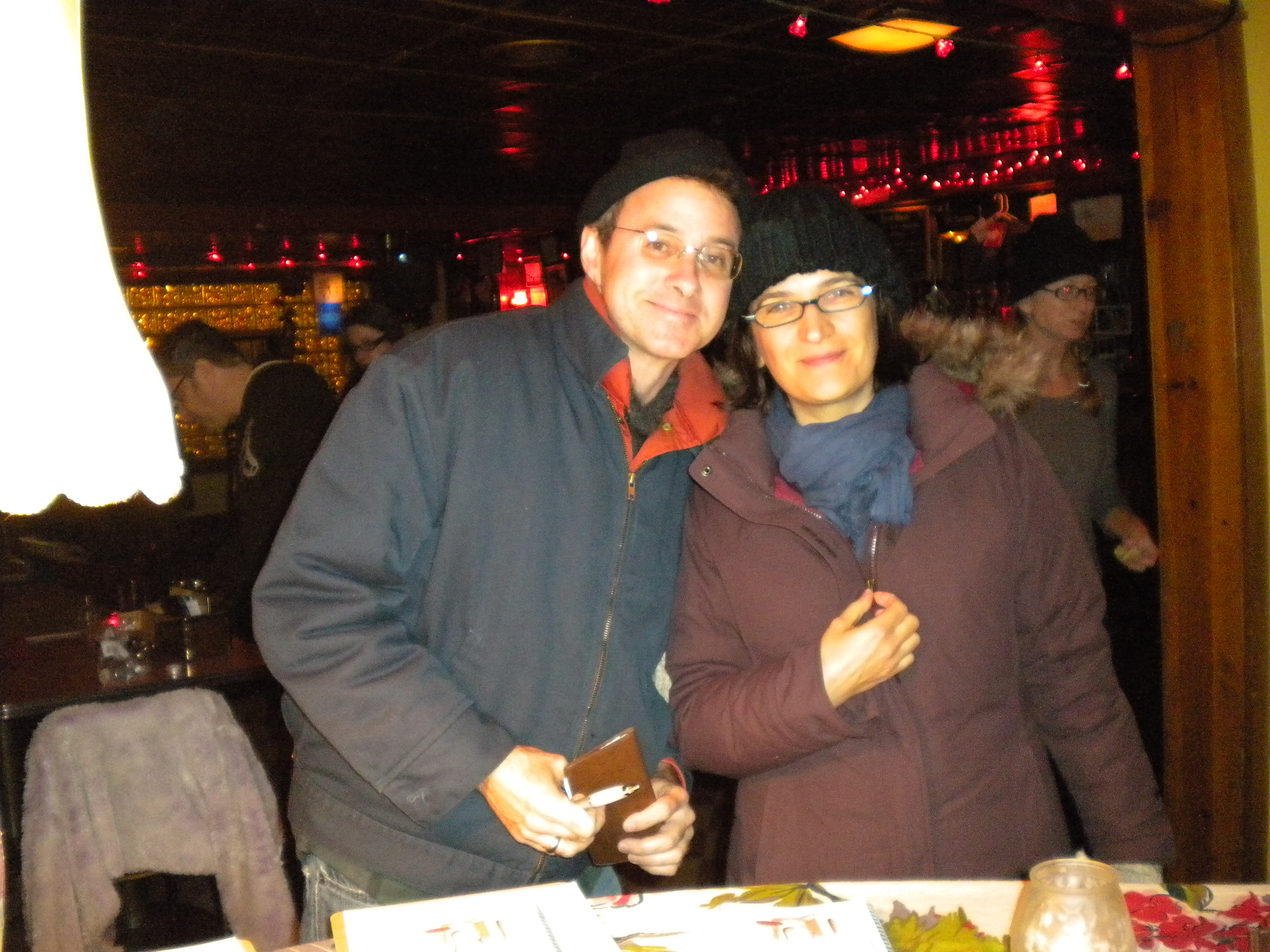 Here’s a shot of our merch table, starring Sheila’s giant peacock tablecloth.
