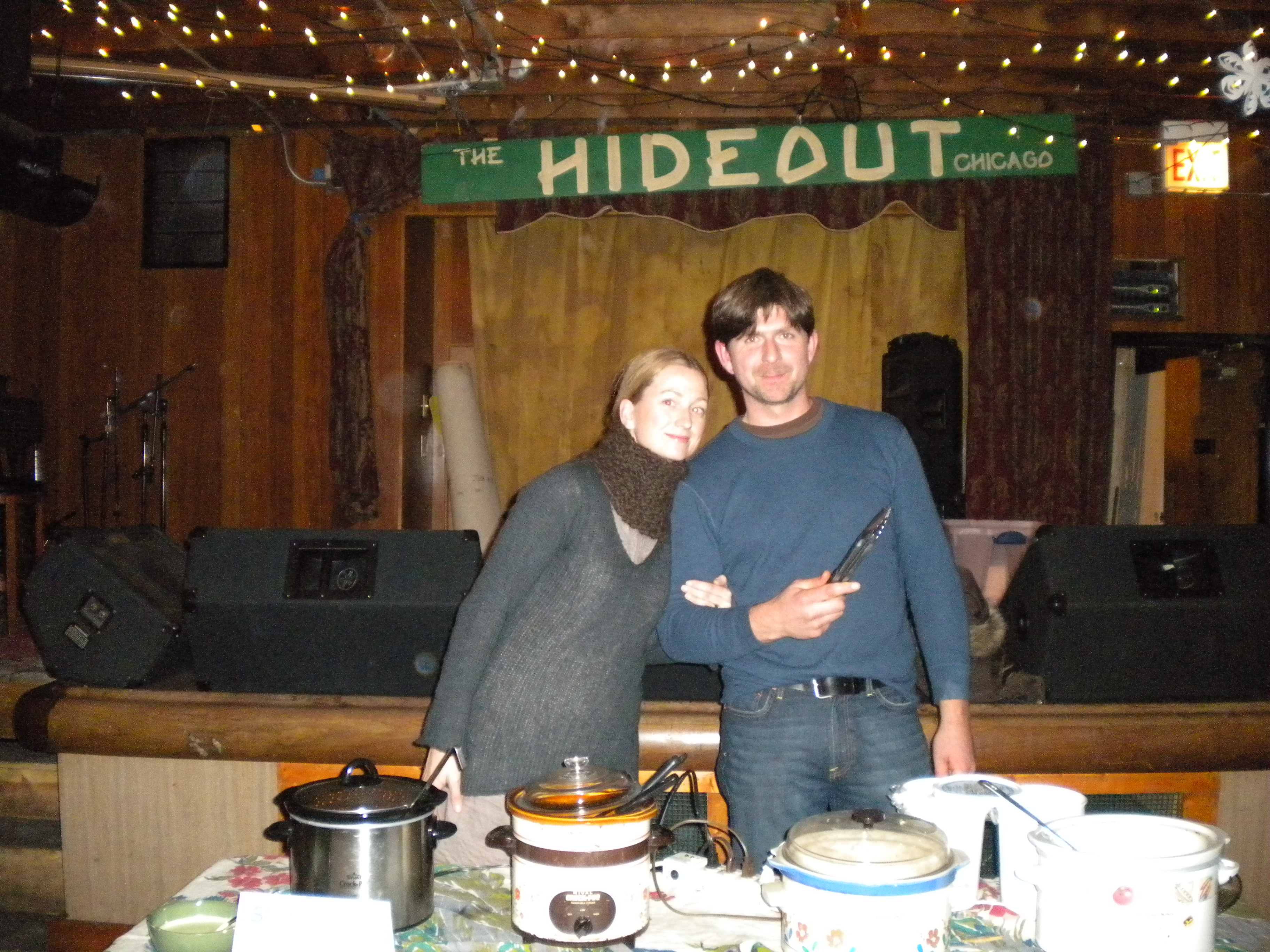Our soup deliveries were unintentionally staggered this time around. First up, in the early part of the evening, Anastasia (left), with a terrific spicy pumpkin soup served with a cilantro cream. To her right, wielding some mean tongs, is Brian Ferguson, executive chef at the Empty Bottle’s Bite Cafe and Big Bite Catering. He turned up with a deeply satisfying chicken-hominy soup that was served with crispy fried tortilla strips and dashes of fresh-squeezed lime. Both of these soups were big hits with the early birds and, to those who arrived too late to get a taste, I can only console you with the information that both Brian and Anastasia have already whipped off their recipes (so prompt!) and I should be posting them soon.