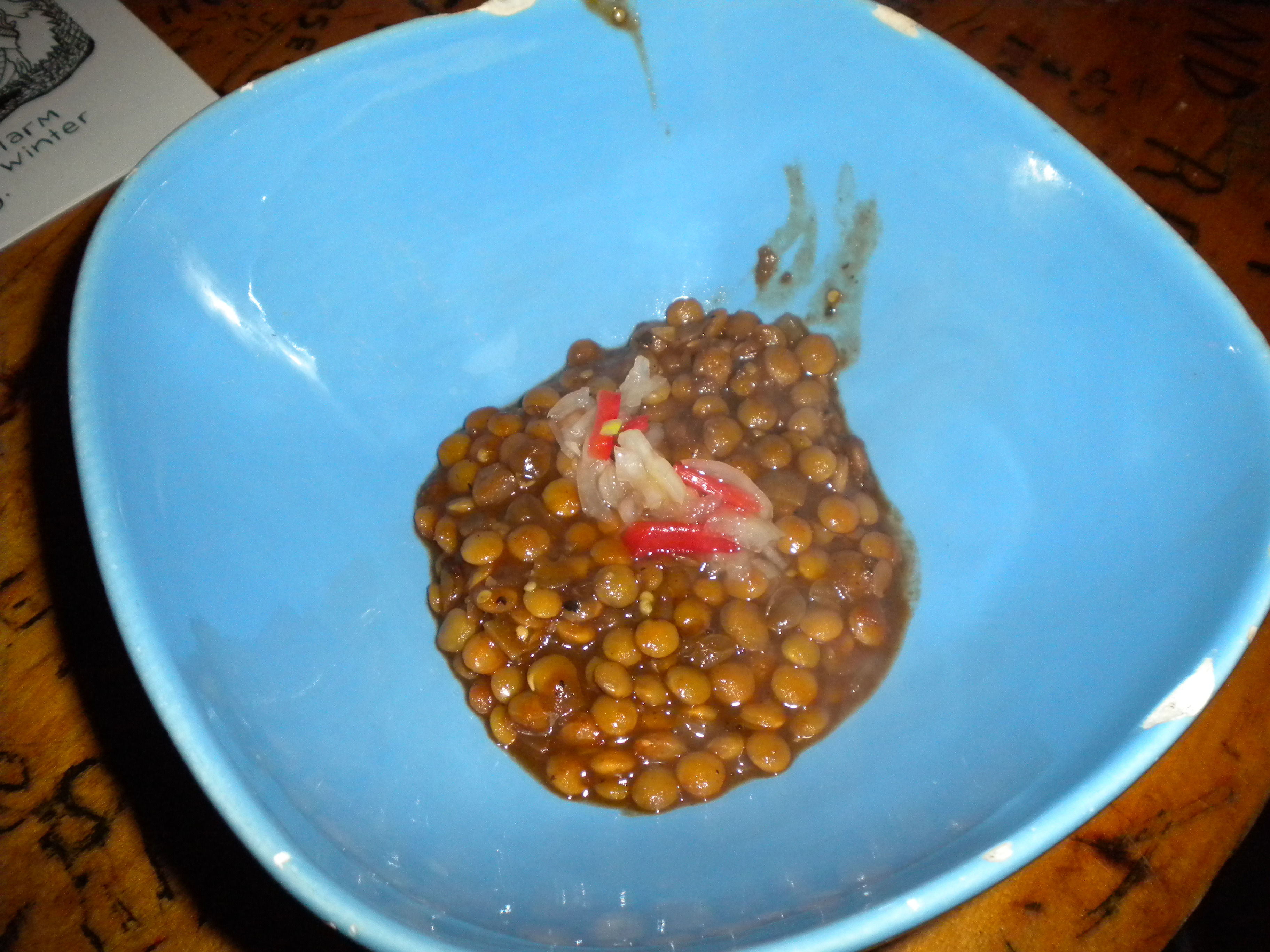 [Ed: Jill served this not with green onions, but some potent red onions quick-pickled with peppers, salt, sugar, and white balsamic vinegar. Their tart sweetness made a great counterpoint to the smoky lentils. And, bonus, the entire bowl is vegan and gluten-free.]