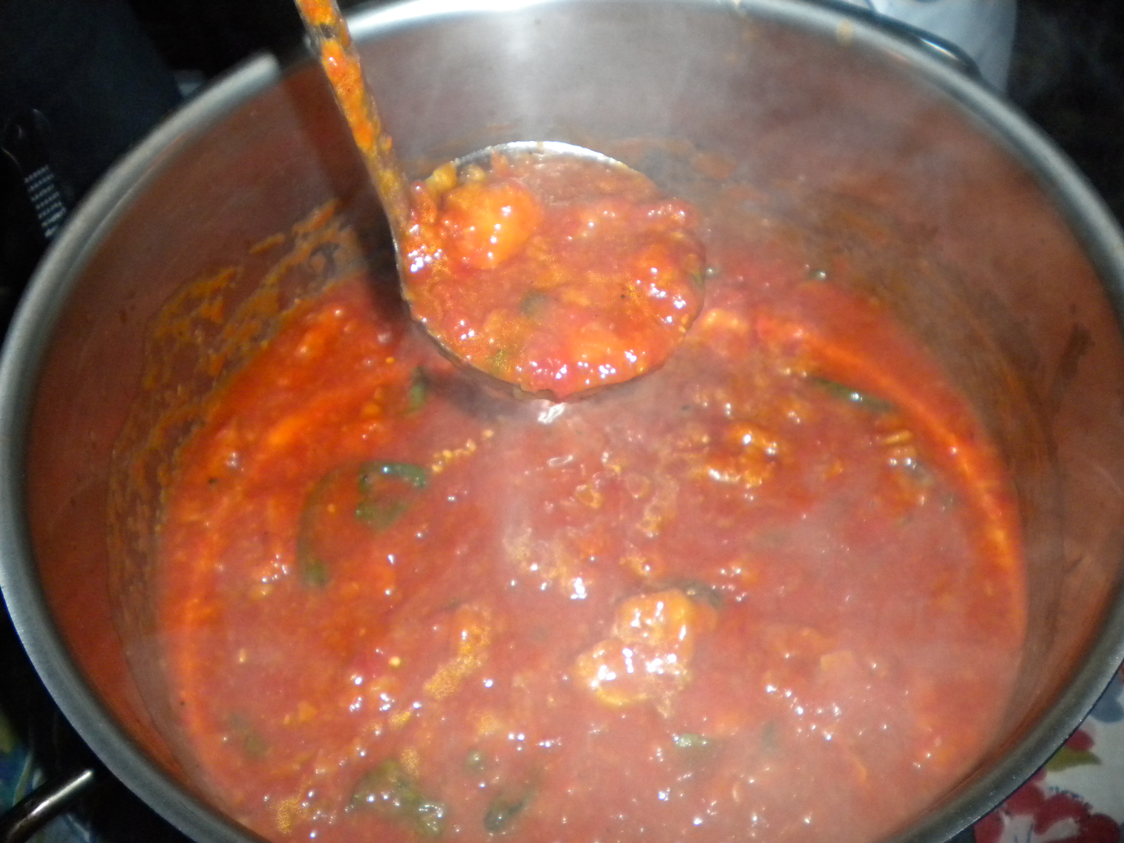 Heat a big ass pot over medium heat. Add the olive oil, then the garlic, and cook until it gets fragrant and starts to color. Add the fennel seed, chili, and jalapeno and cook for a few seconds more.