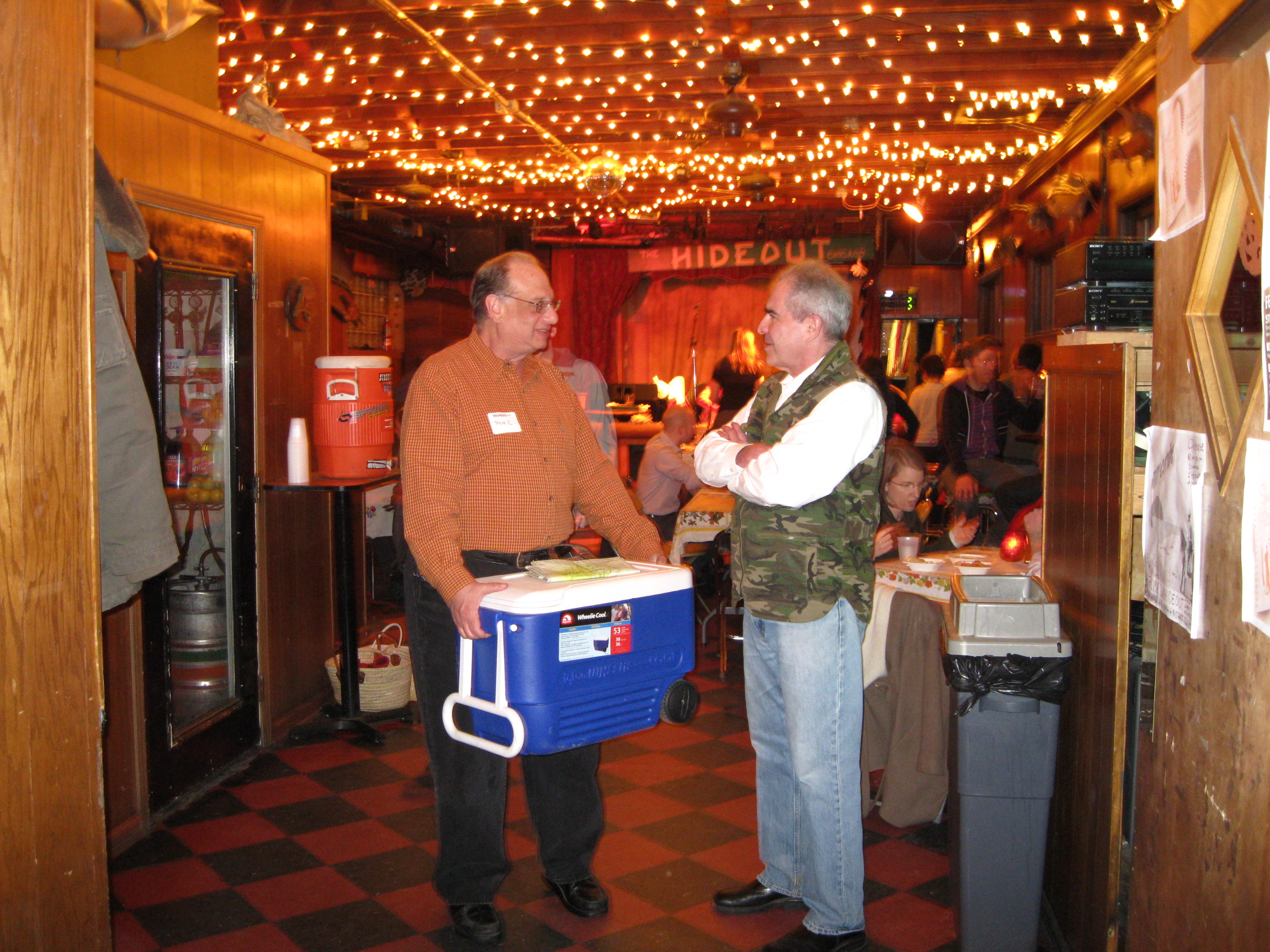 Here, Hammond and Steve Zaransky discuss proper transportation techniques for hot pots of soup. Or, maybe they’re just shooting the breeze — heck if I know. But more than one LTH’er arrived with a piping pot of soup wrapped in hot towels and snugged into a cooler, as above. If anyone’s struggling with their own soup transportation issues, this did seem a quite effective solution.