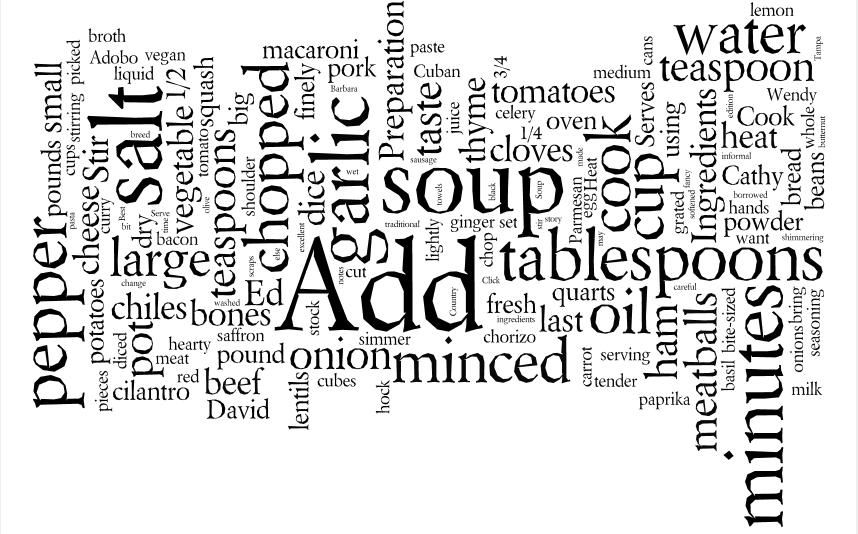 The only thing surprising about this, actually, is that the word “soup” isn’t so huge it crowds all other words to the margins of the cloud.