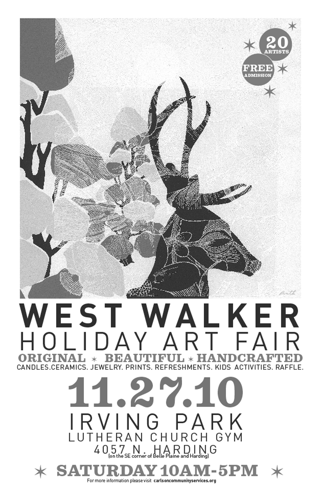 Saturday, Nov. 27, we travel to north to the West Walker Holiday Art Invitational, where we’ll be sharing a table with the excellent Bonnie Tawse, who’ll be selling handmade herbal salves and lotions. That’s from 10-5 in the Irving Park Lutheran Church gym at 4057 N. Harding (on the southeast corner of Belle Plaine and Harding). In addition to arts and crafts (and soup books), the organizers are promising made-to-order crepes, a jug band, and (sweet!) a holiday hair styling station.