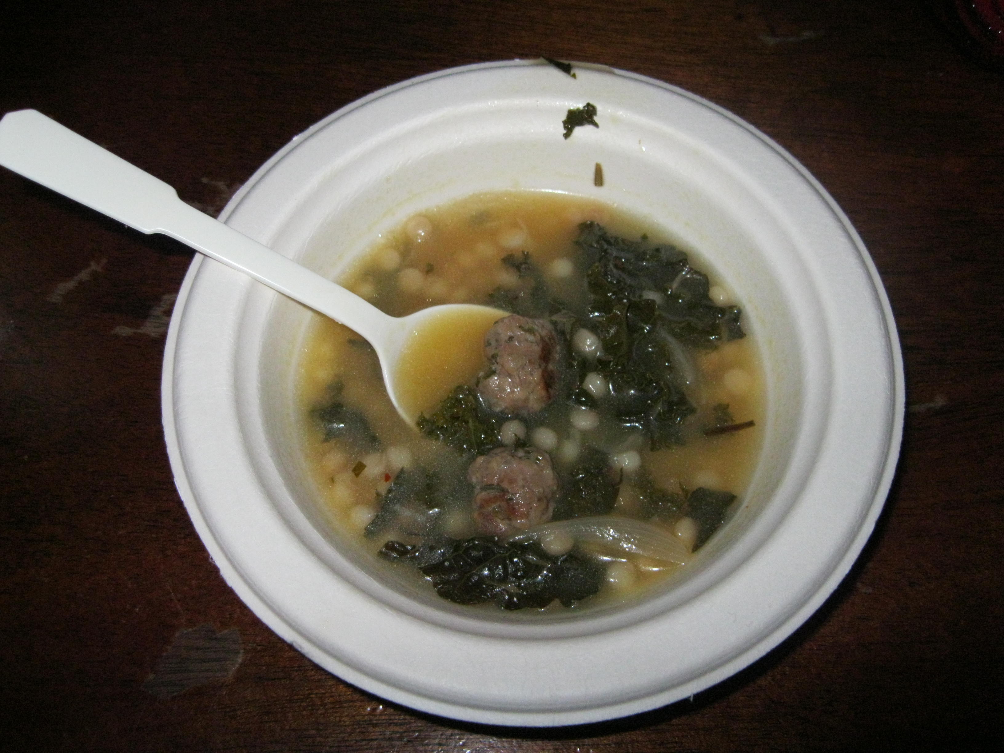 Well – we are finally slogging through a soupy backlog of recipes. Hopefully it’ll stay bite-ass cold just long enough for you to try out a couple at home before we move into Gazpacho & Flatbread season. Herewith, Jeanelle and Won‘s Italian Mistress Soup. It’s like Italian Wedding Soup, but more scandalous. Eat with plenty of hand gestures and the scantily clad partner of your choice.