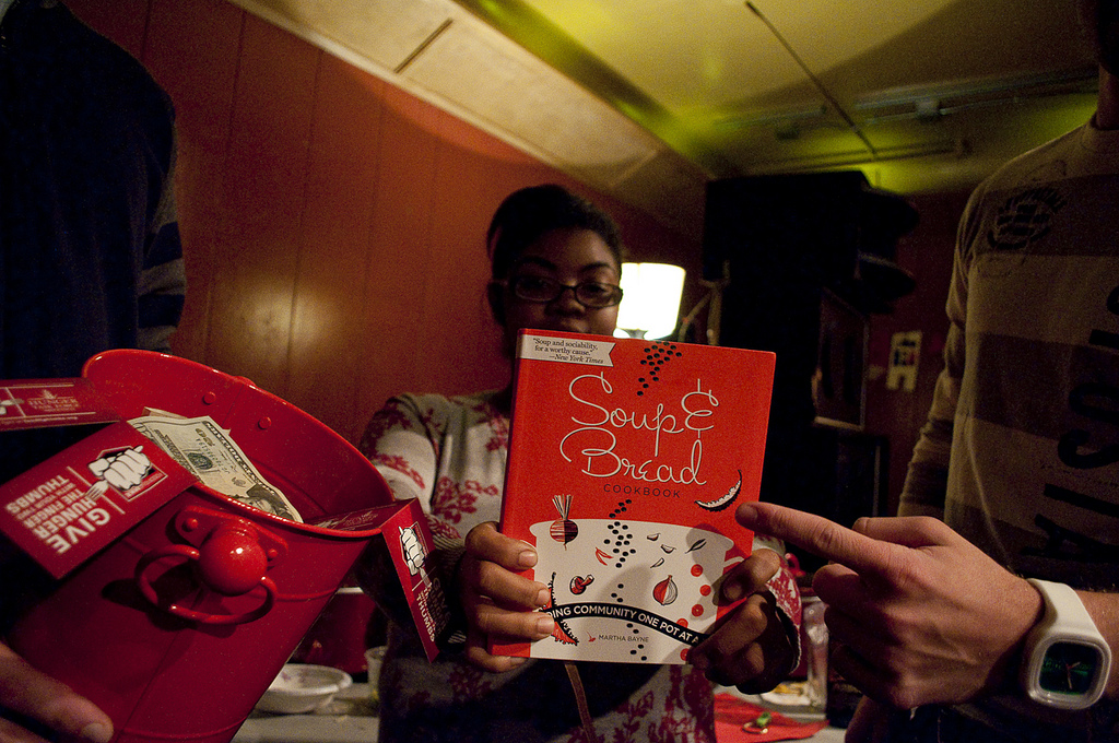 At Milwaukee’s Sugar Maple on December 1 I met a woman who, unbeknownst to me, was staging her own Soup & Bread event two weeks later. That this happened was seriously thrilling. There’s a DIY Soup & Bread primer at the back of the cookbook, but I never actually thought this random idea would find its legs and run away. There was also allegedly a Soup & Bread in Atlanta early this month, and last I checked plans were afoot in NYC as well. Thrilling. To see photos from the Milwaukee S&B, which took place Dec. 15 at Riverwest Public House, go here. These upstart Soup & Breads made me anxious — How do we know they won’t muddy the message? How do we know they won’t go off and get sponsorship from Archer Daniels Midland? Can they keep it real? I’ve been using the term “open source” as a reference for Soup & Bread, and whatever proprietary feelings I have are probably not manifestations of my best impulses. Now, the anxiety has faded, but the question remains: What’s next?