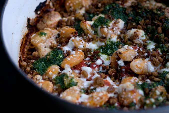 Garnished with cilantro-lime pesto and crumbled feta, this hearty bowl is Helen’s soupified adaptation of Heidi Swanson’s “giant chipotle white beans recipe” at 101cookbooks.com. Sadly, I didn’t get a photo — I pinched this one from Swanson; just … visualize it with broth — but this was another great winter soup, both hearty and healthy.