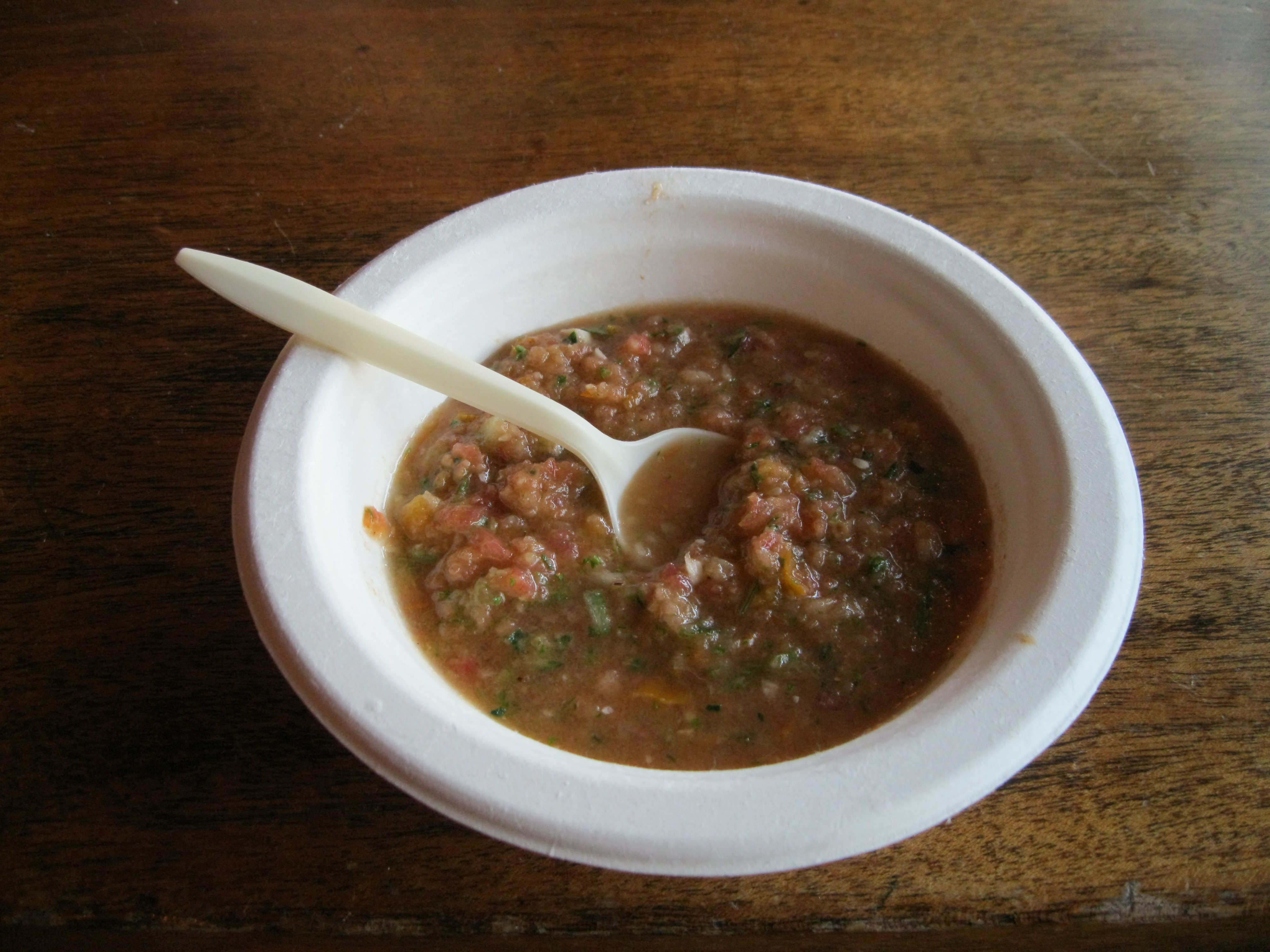 It was hot out, so I went to Stanley’s to get stuff to make gazpacho instead of the champurrados I’d been planning on making. Champurrados is great on a frosty March morning, being a kind of Mexican hot chocolate gruel; it was 80 degrees out. Not so frosty.