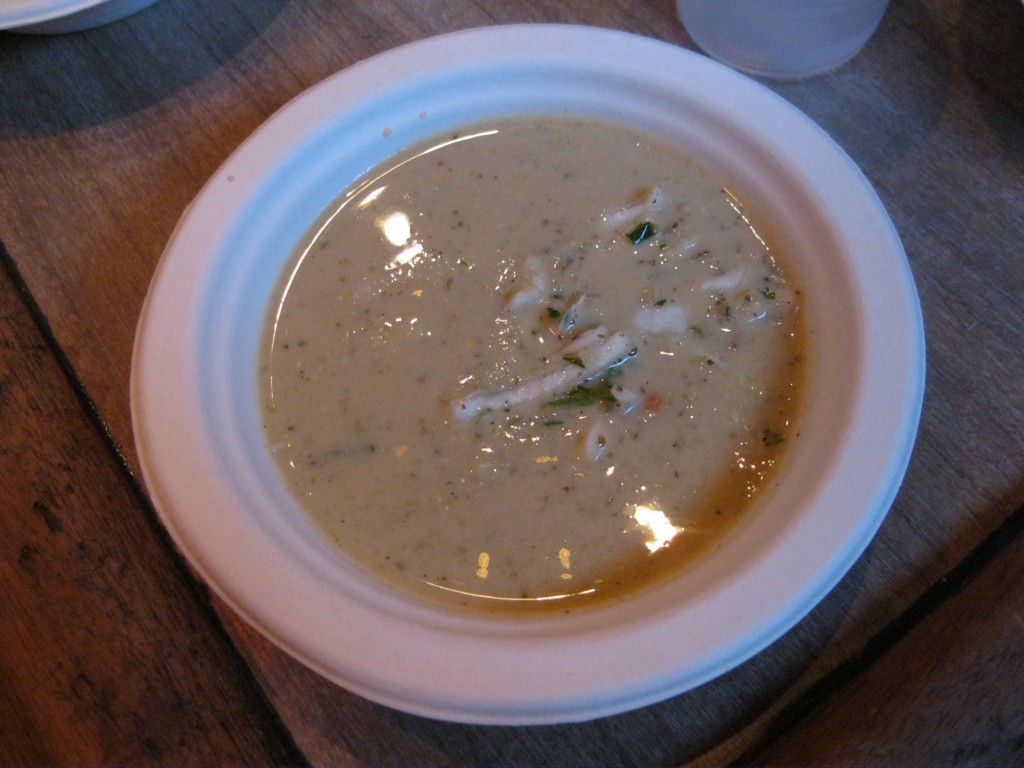 Alison’s been an annual Soup & Bread cook — and her recipe for khao tom, created with Andrea Deibler, is featured in the Soup & Bread Cookbook. This time around, she produced something altogether different, and delicious. Says Allison: “I don’t mind doing dishes, so this soup isn’t exactly a one-pot meal. It could definitely be simplified by excluding the cream scalding step, cooking the vegetables in the same stock pot and setting aside prior to heating up the stock. This recipe uses homemade vegetable stock, but punching up store-bought stock with the vegetable and fruit scraps you’re already for this dish is a nice alternative. This is a bright and tangy soup, but the amounts of cream, vinegar, etc. can be easily adjusted to taste.”