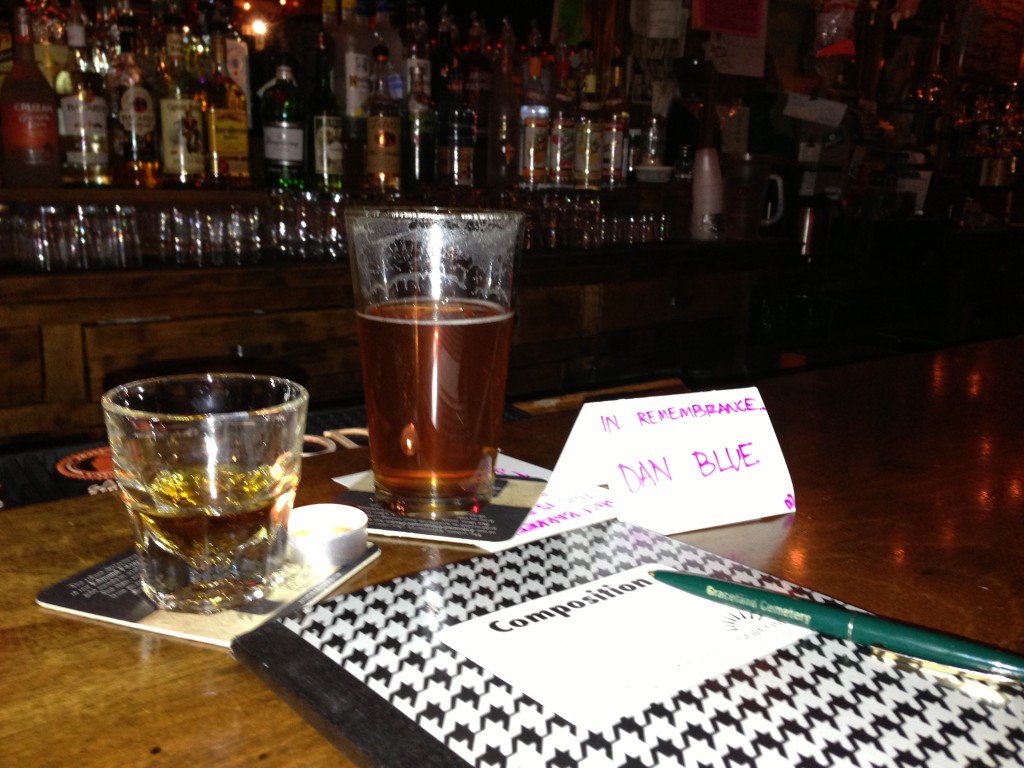 Before I get out of here and move on to posting those recipes, lets take a moment to pour one out for our friend and neighbor Dan Blue. Dan was a fixture at the Hideout — the bar was only a few hops from his home — and one of the most gallant and generous people you could ever hope to meet. His support of Soup & Bread was unstinting: He loaned us bread knives and crock pots; he showed up one night with a vat of seafood chowder — and when Sheila needed shrimp for her mom’s red pepper-shrimp bisque, Dan was there … with four frozen pounds of it. He was a sculptor and metalworker and a man of tall tales and many mysteries, and he died January 1, at his loft on Ada Street. We miss him very much. For the next few weeks the Hideout is collecting remembrances of Dan in this notebook at the bar; his friend Art Shay posted this heartfelt tribute last week over at Chicagoist.
