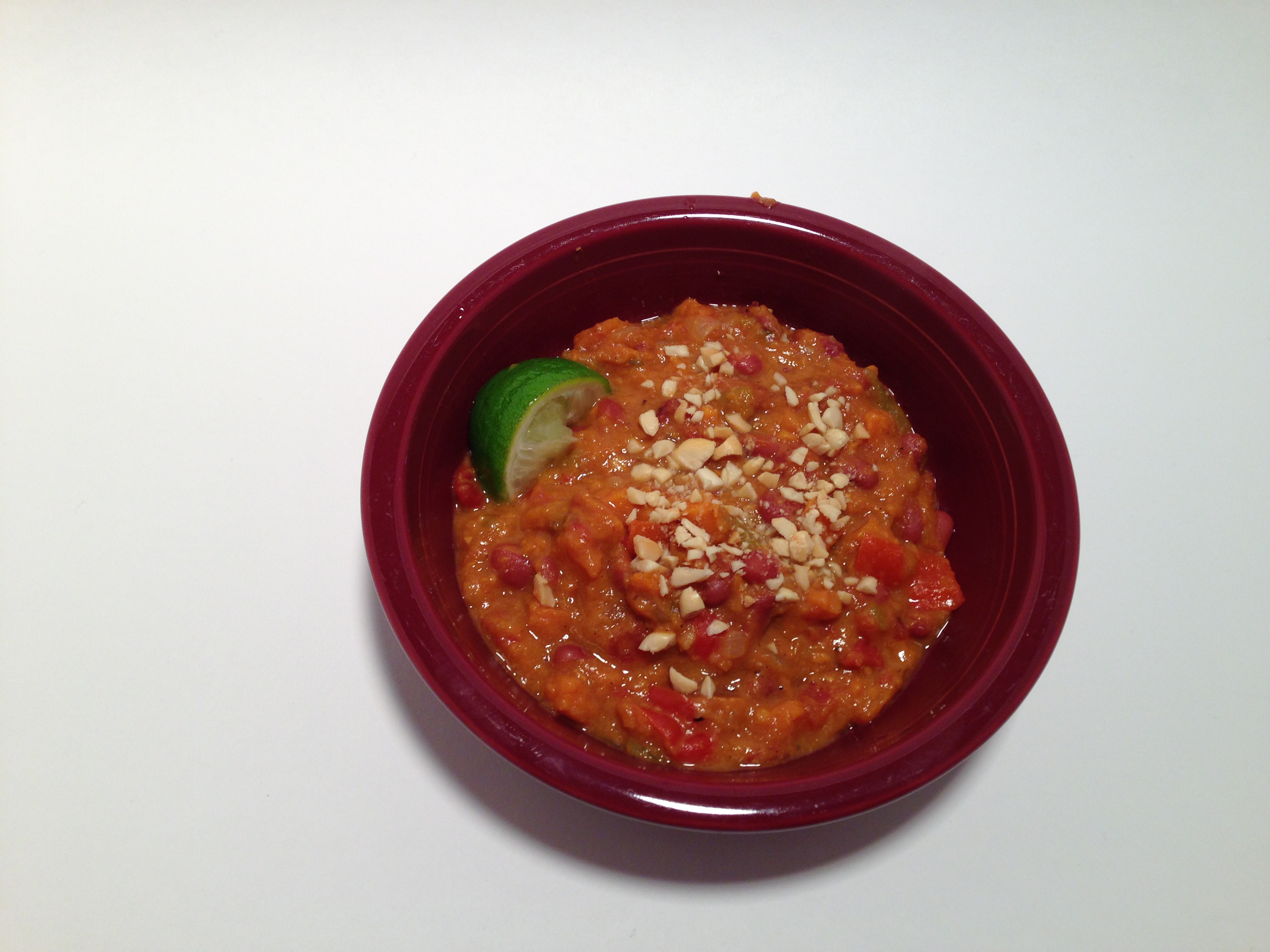 Spoon 1 cup cooking liquid into a small bowl. Add peanut butter; stir well with a whisk. Stir peanut butter mixture into stew. At this point, I mash about ½-3/4 of the ingredients, leaving some chunks.