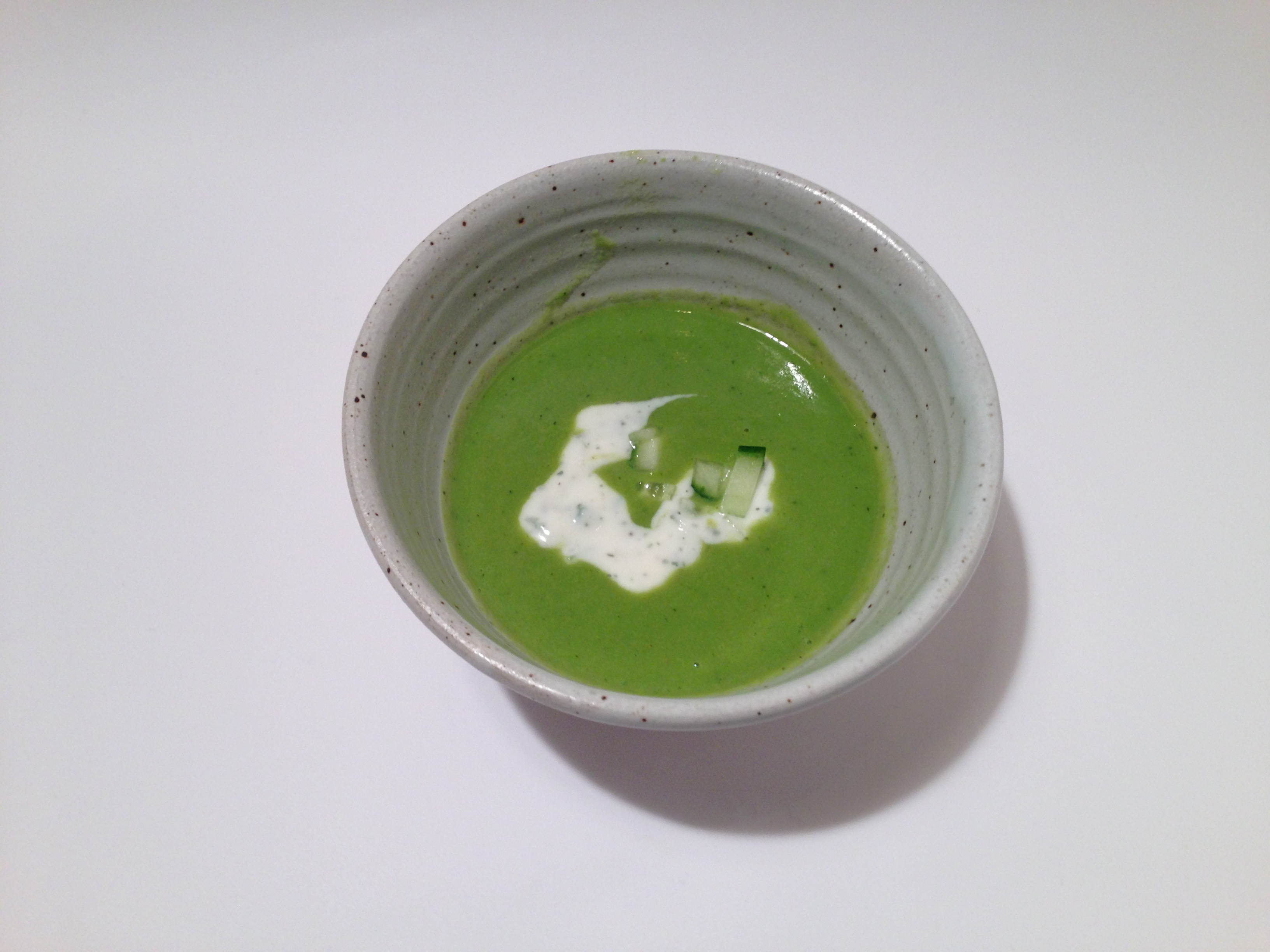 Alia posted the recipe for this on her own website, Urban Chickpea, last week, along with heaps of beautiful photos and background on how she developed the recipe. I’ll just reprint the basics, here with a note that for a plain pea soup this has a wonderful depth of flavor — not to mention a delicate green hue all to suitable to what Alia calls this month of “Seasonal Limbo.” PS: Did you know Alia was a Check, Please! finalist? Check out her video here!