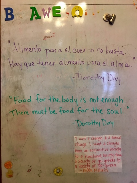 When I went to visit Casa Catalina Basic Human Needs Center in Back of the Yards, Sr. Joellen Tumas and Liz Flores, the sole other paid staffer, were in the process of reorganizing their entire storefront operation along the lines of a “full-choice market” — one where clients can work with a personal shopper to pick from the pantry offerings — with the help of volunteers while also trying to serve 150 people a day, and figure out where to put kids to play while their mothers picked up food.
