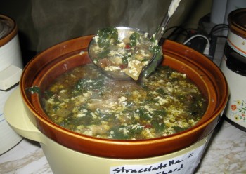 From Celia Bucci Serves 4-8 [Another great soup from the puniest of raw materials: egg, cheese, greens, water. The flavors are delicate — especially if you come to this after chowing down on, say, cabbage […]